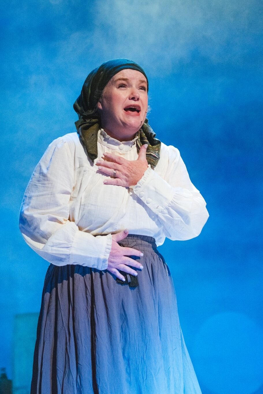 Fiddler on The Roof, Phoenix Festival Theater: Cathy Koncurat is strongly voiced, strongly opinionated, and fully embodies the grumpy, albeit lovable, character that is Golde, Tevye’s wife. You won’t be able to take your eyes off of her during the wedding, once the ‘dancing’ begins. Her facial expressions are hilarious as she begrudgingly gets dragged along into the merriment. She’s bristly and obstreperous, holding her own against Tevye, showing the edge of her patience-break when it comes to Yente, and mouths quick-wittedly at her daughters all in good time. But the really remarkable thing to note about Koncurat’s performance as Golde is the moment of raw discovery. Her voice is beautiful, no question, and it services “Do You Love Me?” with real emotional sincerity. But it’s that moment deep in that song where the sudden realization that this man that she’s been married to for 25 years— that she actually, earnestly loves him? When that moment hits her, it’s breathtaking and the smile that crosses her lips and stays there through the end of the number is wondrous too.